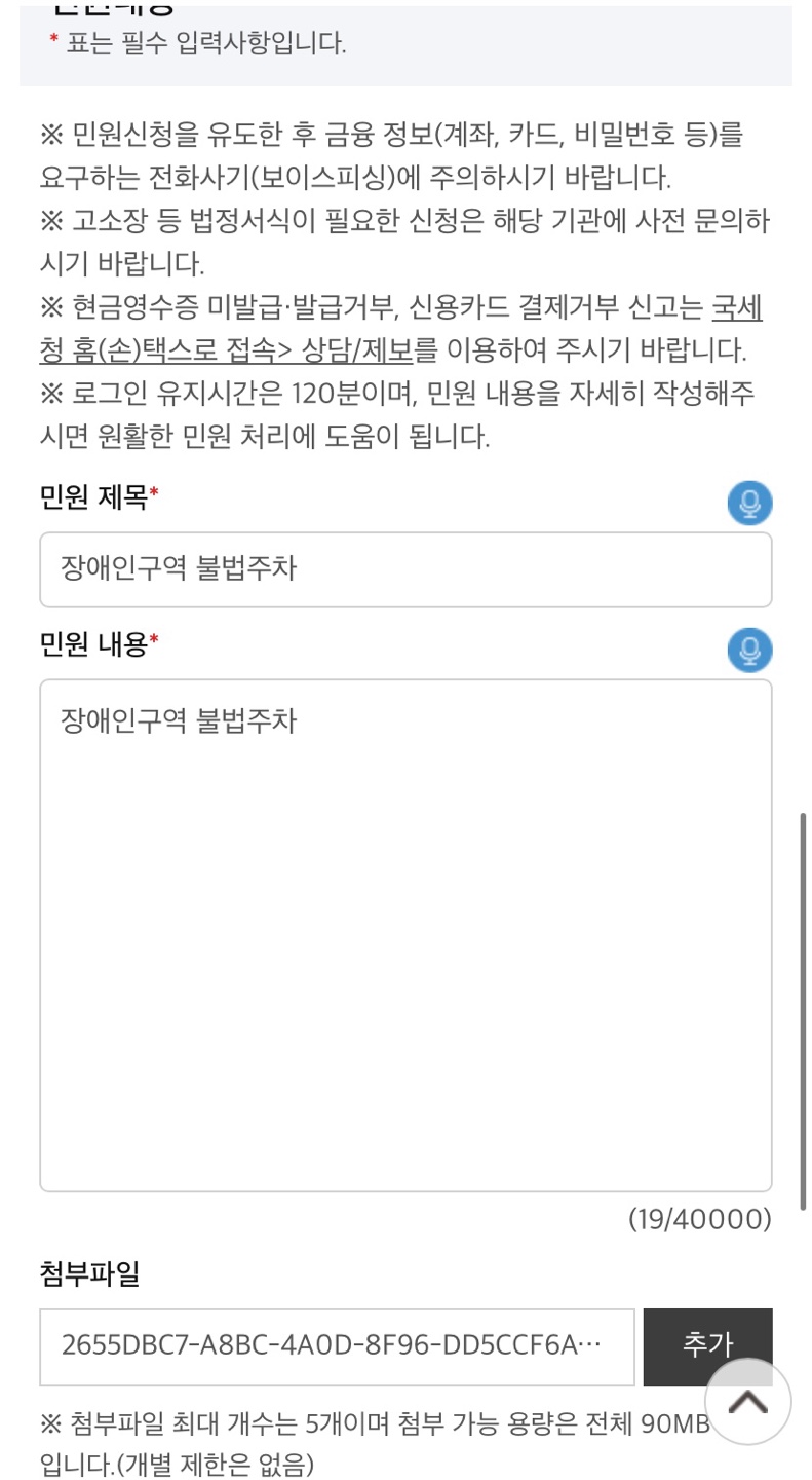5. 차량 정보, 민원 내용 입력