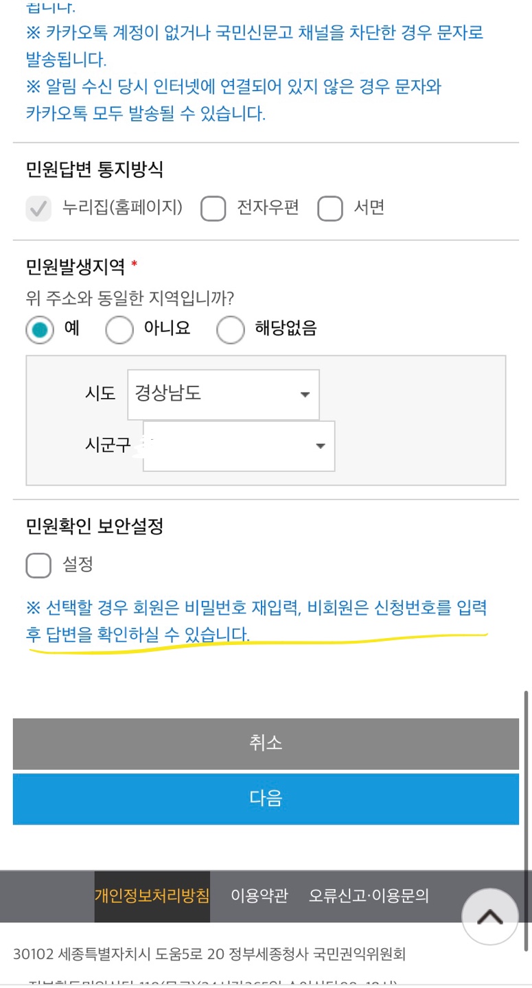 민원 확인을 해보실 수 도 있습니다.