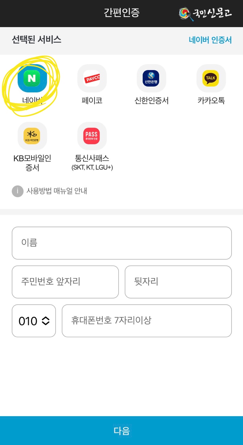 네이버의 간편인증 서비스가 있으시다면