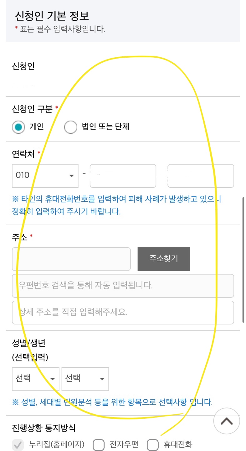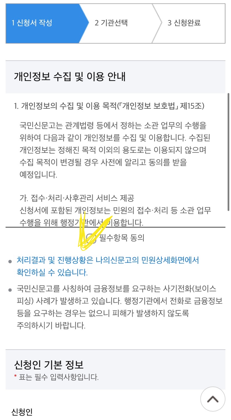 신청인 정보를 입력하게 되어있습니다.